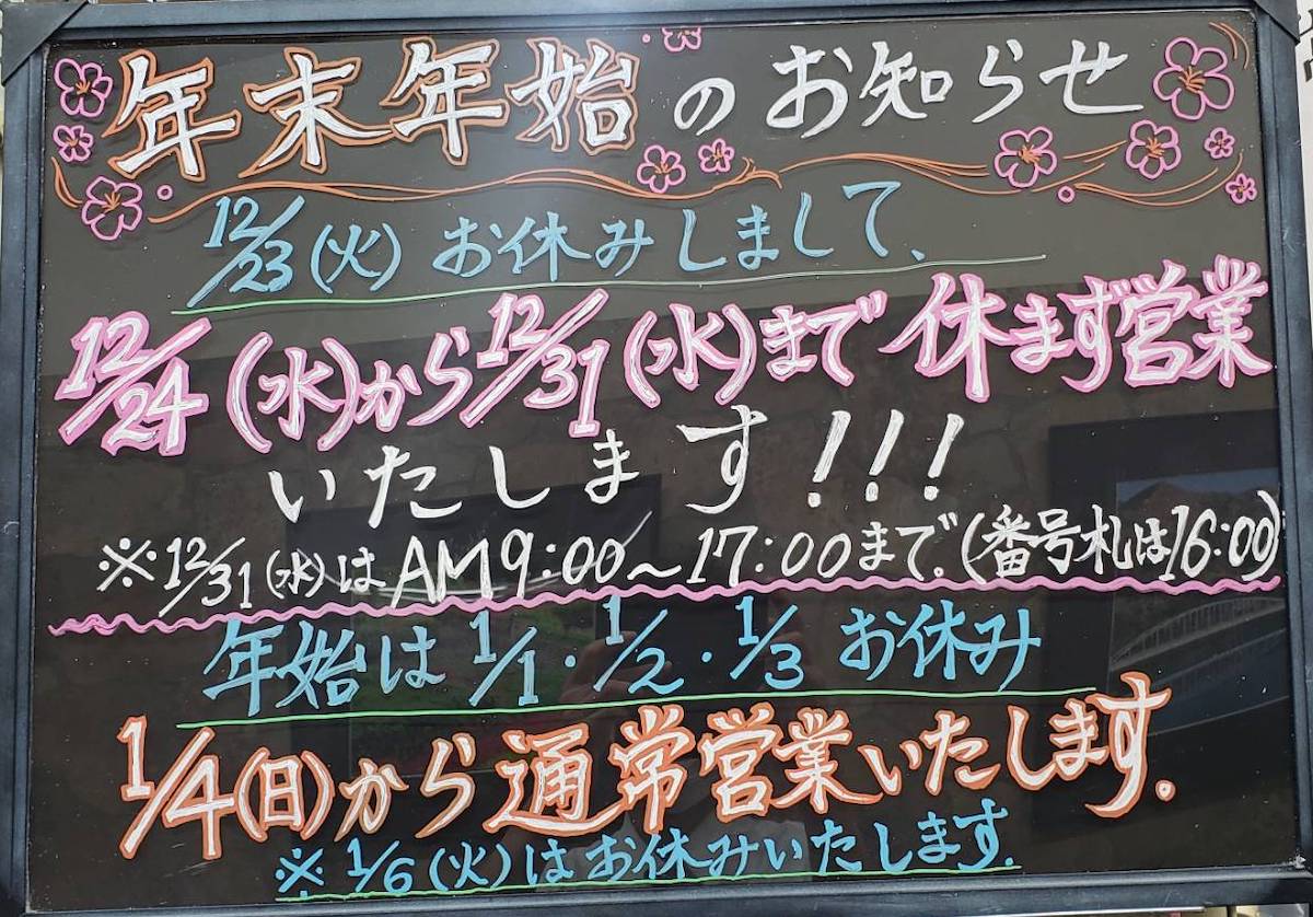 ※12/31(水)はAM9:00〜17:00まで(番号札は16:00まで)